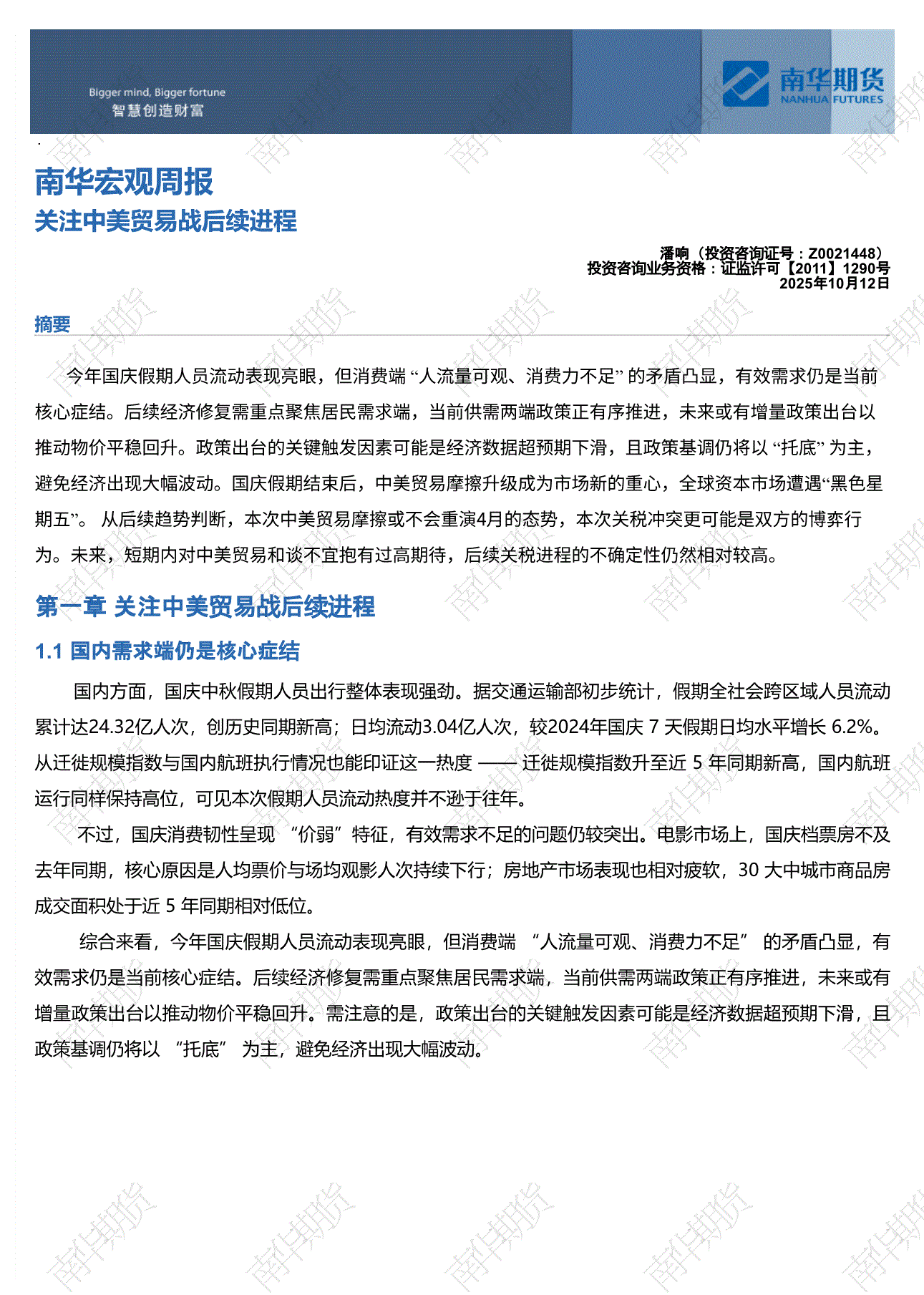 南华期货-宏观周报:关注中美贸易战后续进程-251012