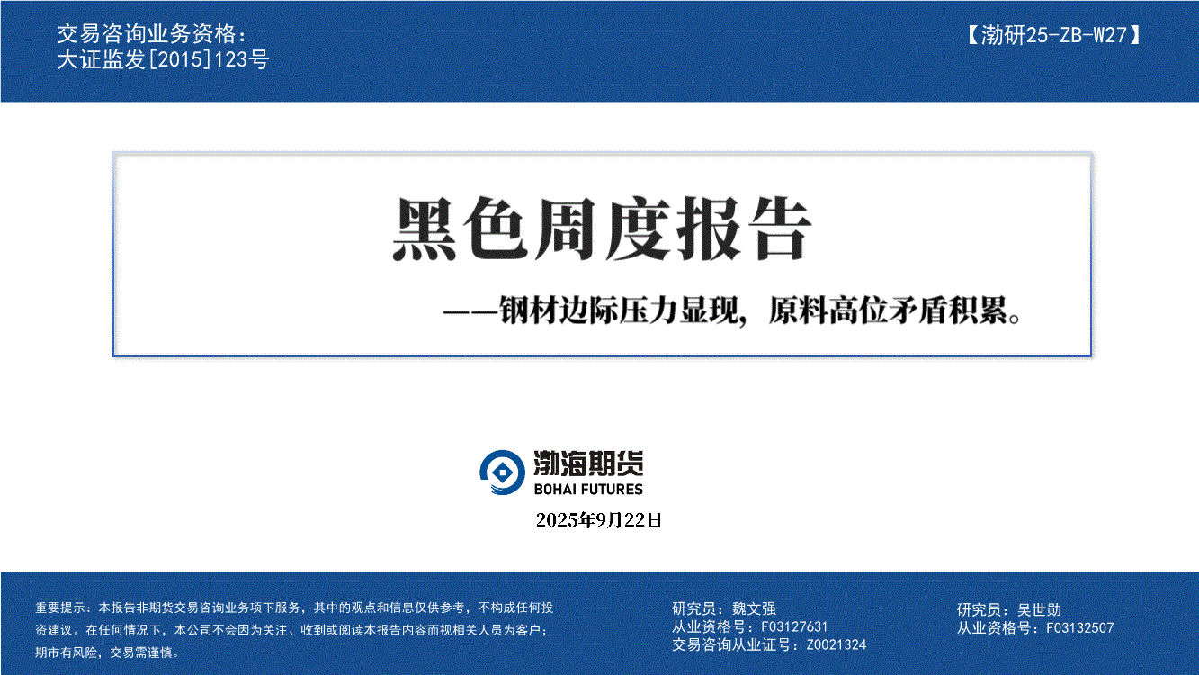 渤海期货-黑色周度报告:钢材边际压力显现,原料高位矛盾积累-250922