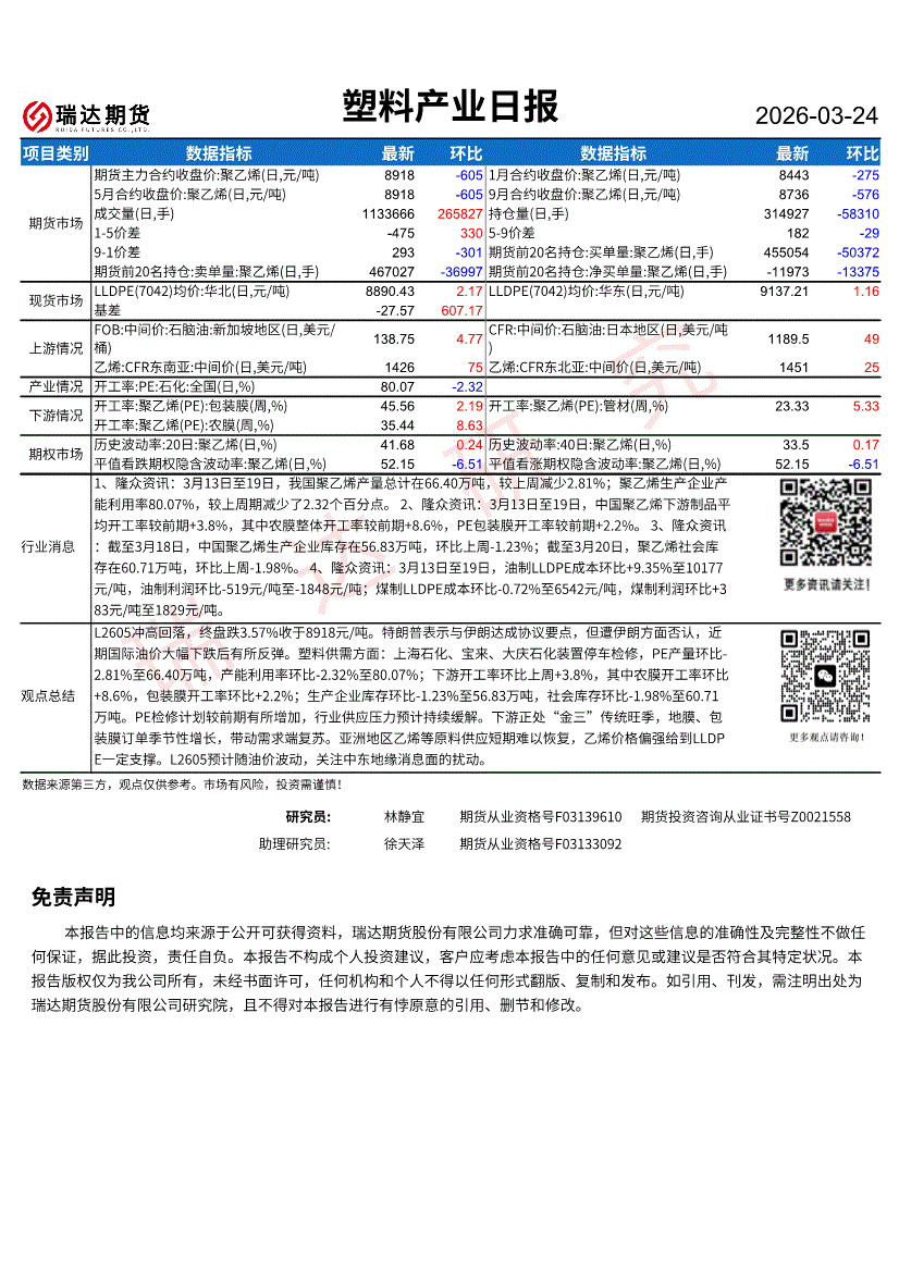 瑞达期货-塑料产业日报-260324