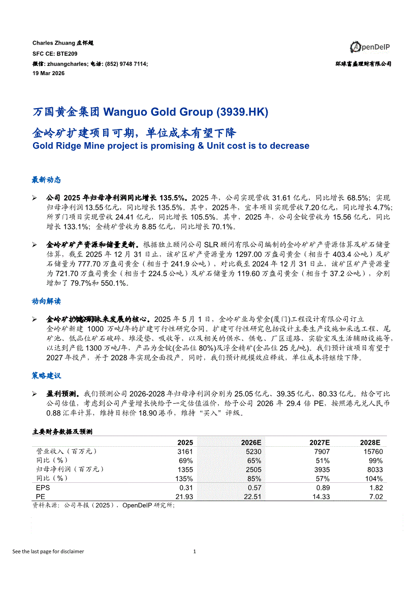 万国黄金集团:环球富盛-万国黄金集团-3939.HK-金岭矿扩建项目可期,单位成本有望下降-260319
