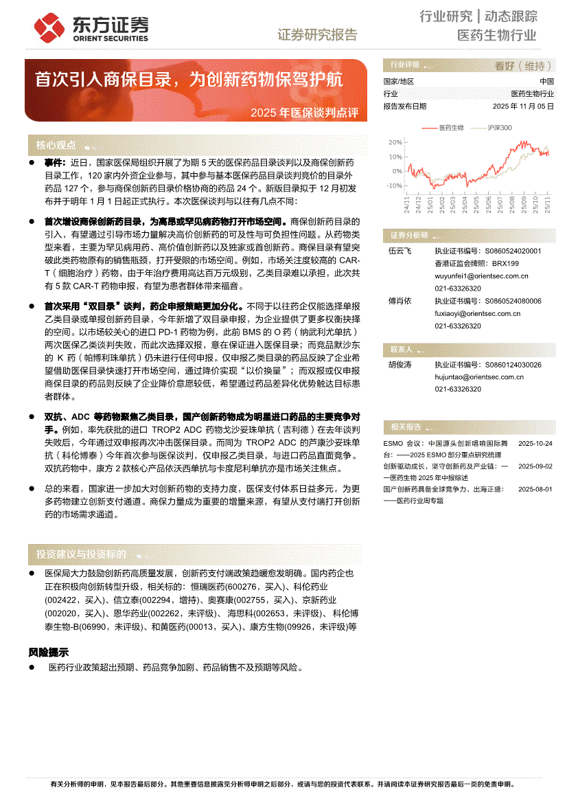 医药生物行业:东方证券-医药生物行业2025年医保谈判点评:首次引入商保目录,为创新药物保驾护航-251105
