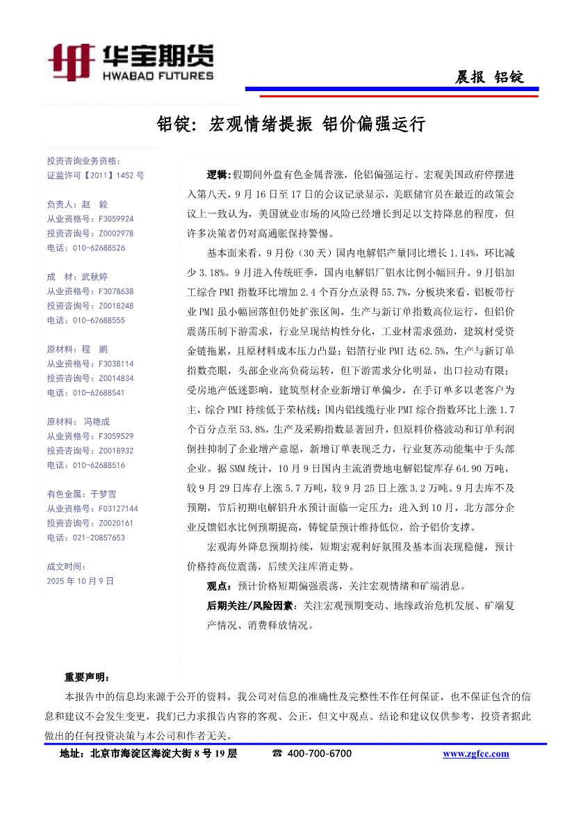 华宝期货-铝锭:宏观情绪提振,铝价偏强运行-251009