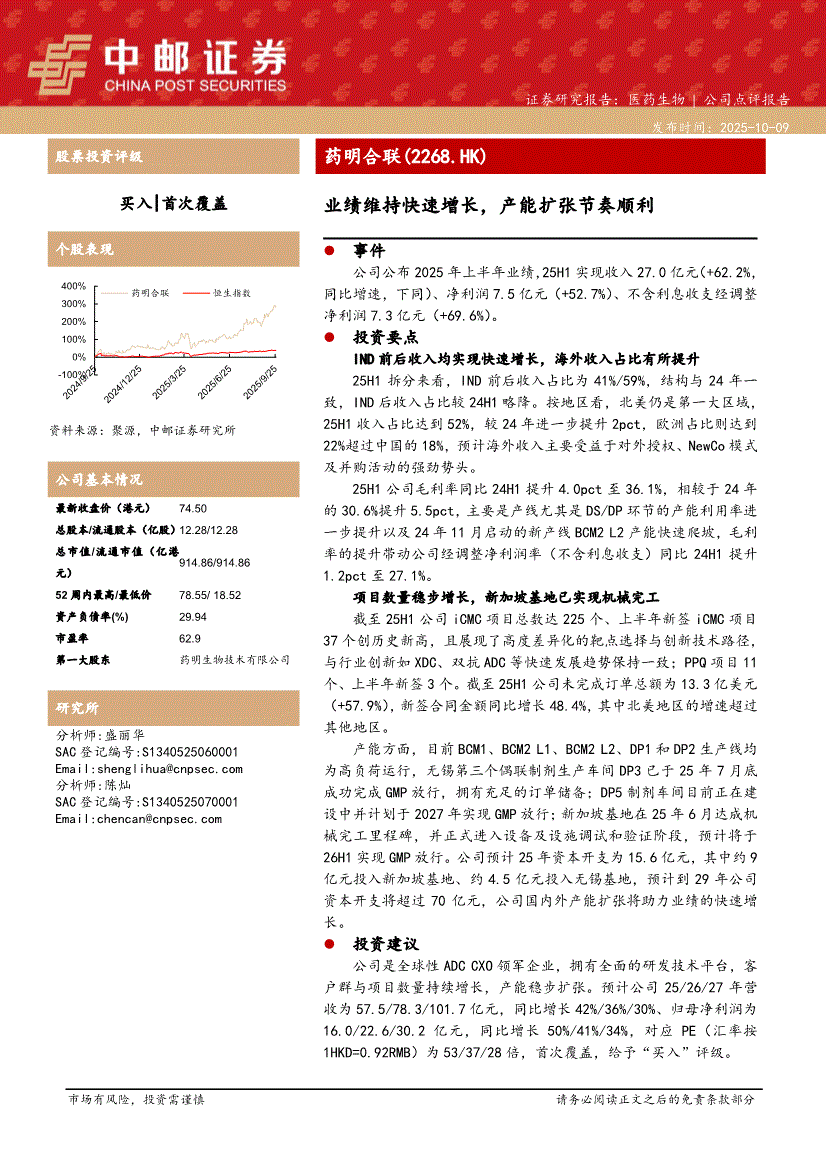 药明合联:中邮证券-药明合联-2268.HK-业绩维持快速增长,产能扩张节奏顺利-251009