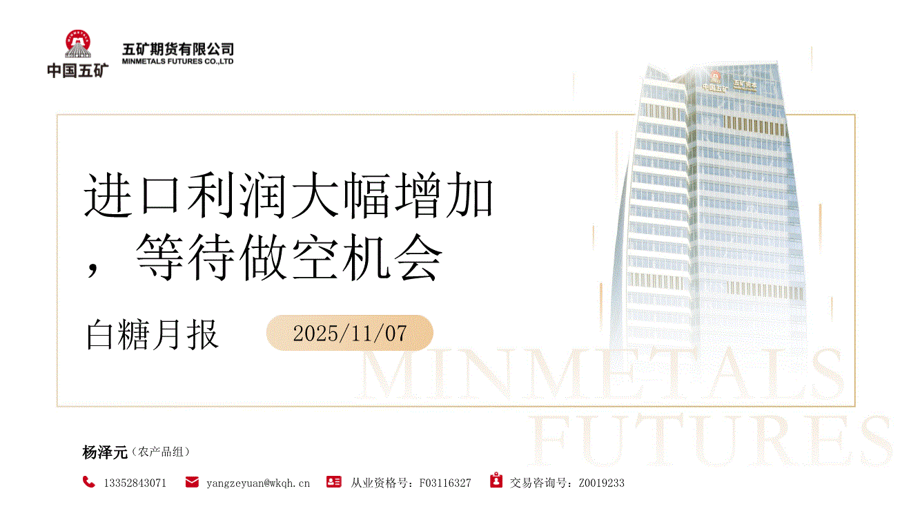 五矿期货-白糖月报:进口利润大幅增加,等待做空机会-251107