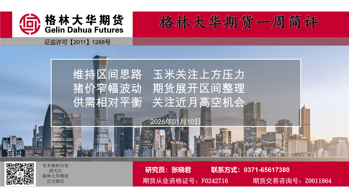 格林大华期货-一周简评:维持区间思路,玉米关注上方压力,猪价窄幅波动,期货展开区间整理,供需相对平衡,关注近月高空机会-260110