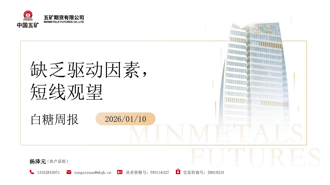 五矿期货-白糖周报:缺乏驱动因素,短线观望-260110