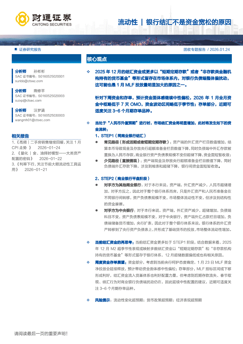财通证券-流动性|银行结汇不是资金宽松的原因-260124