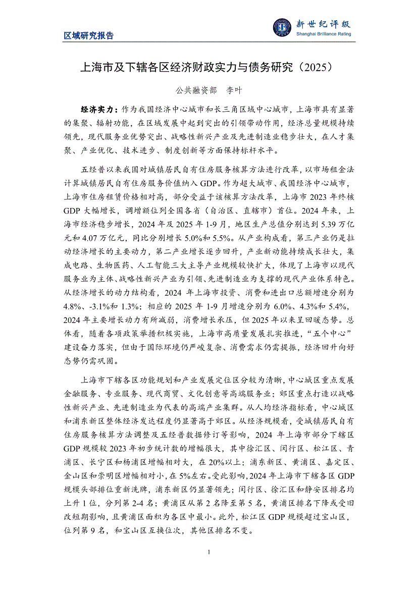 新世纪评级-上海市及下辖各区经济财政实力与债务研究(2025)-251127