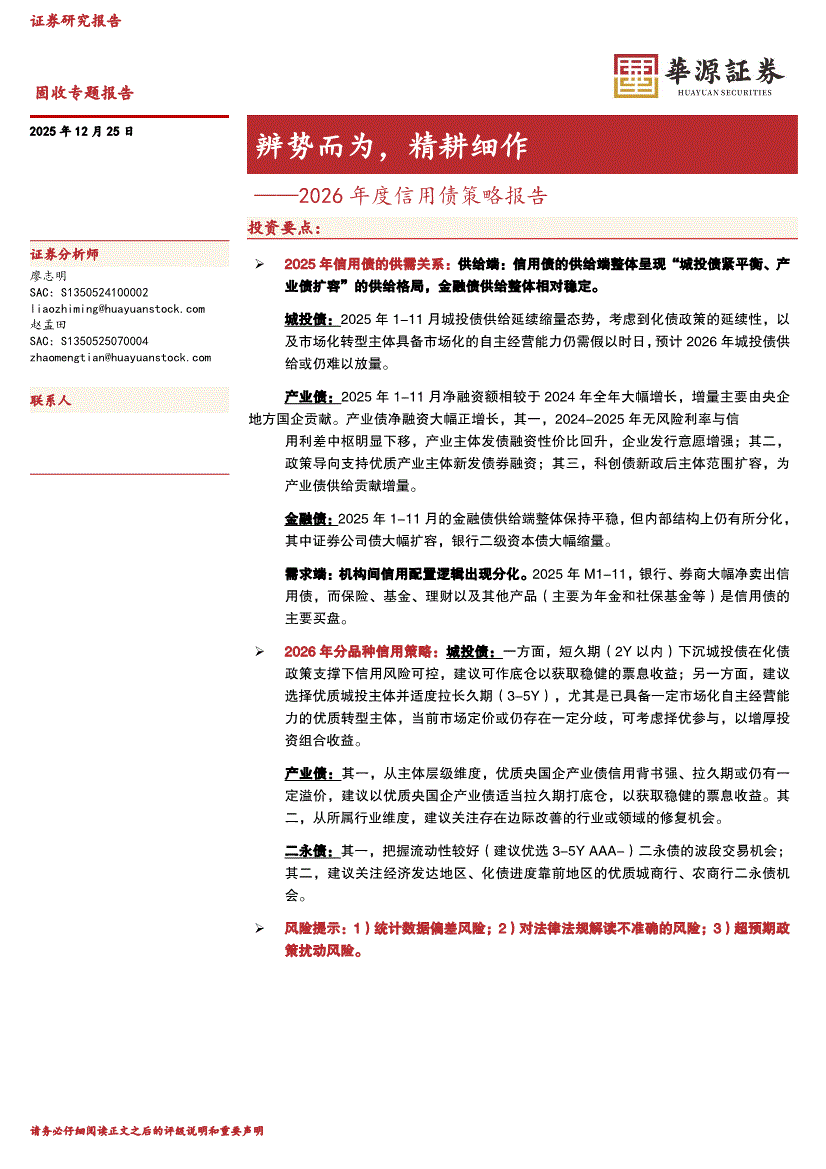 华源证券-2026年度信用债策略报告:辨势而为,精耕细作-251225