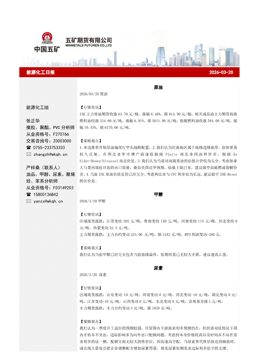 五矿期货-能源化工日报-260320