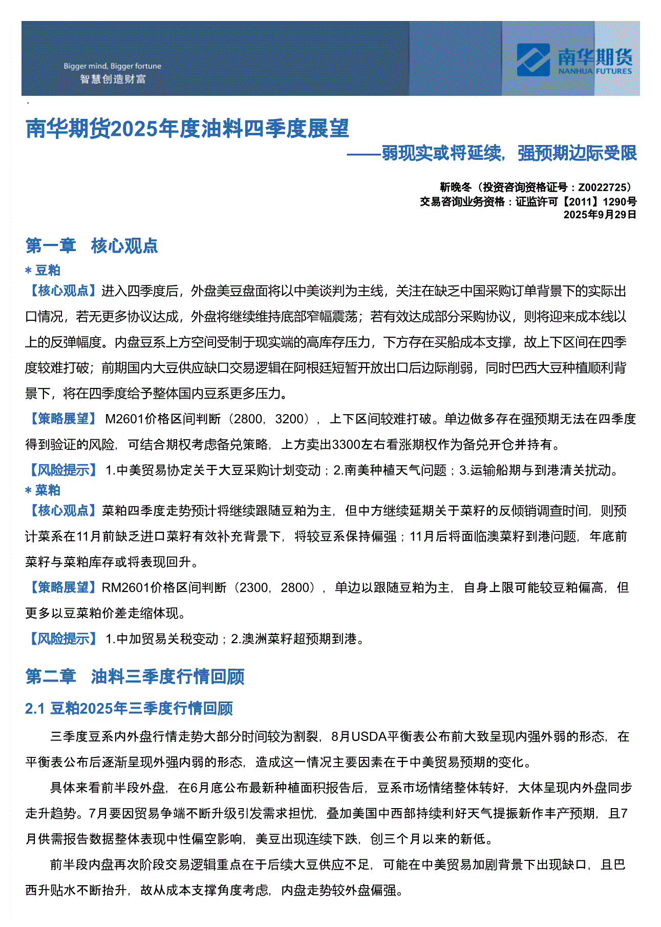 南华期货-2025年度油料四季度展望:弱现实或将延续,强预期边际受限-250929