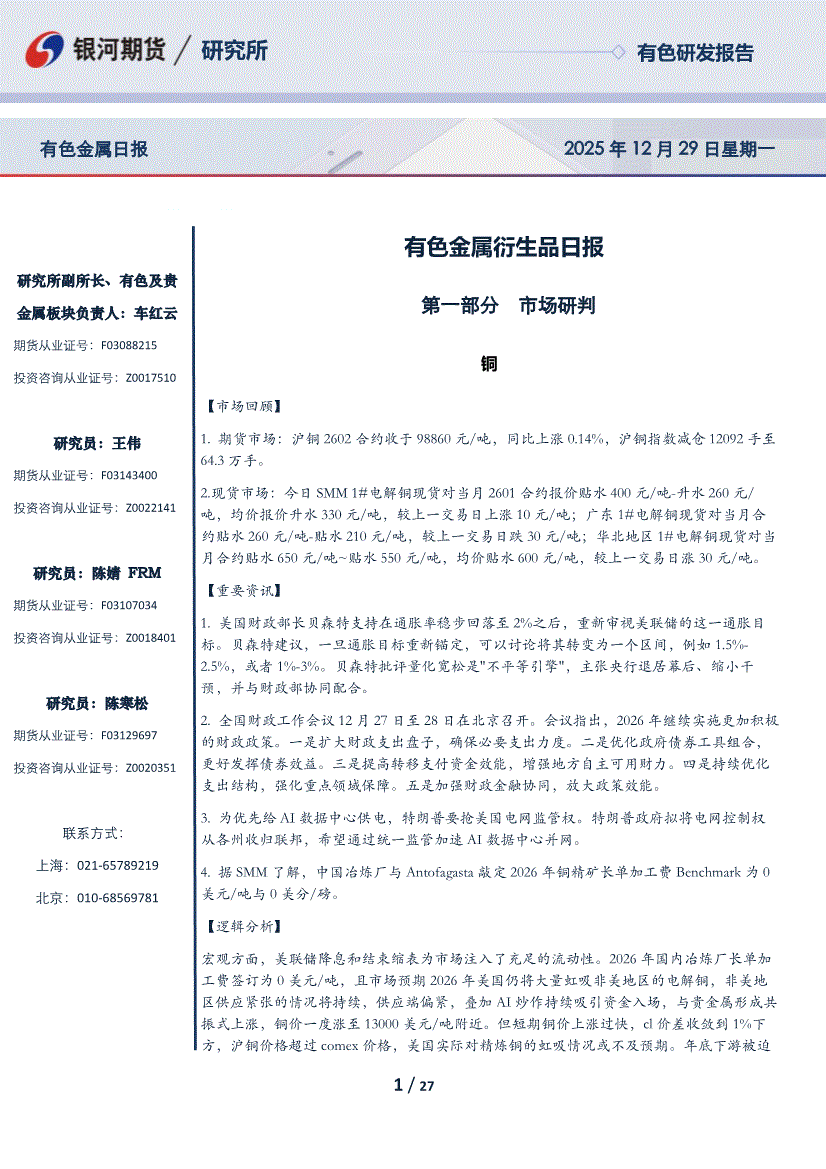 银河期货-有色金属衍生品日报-251229