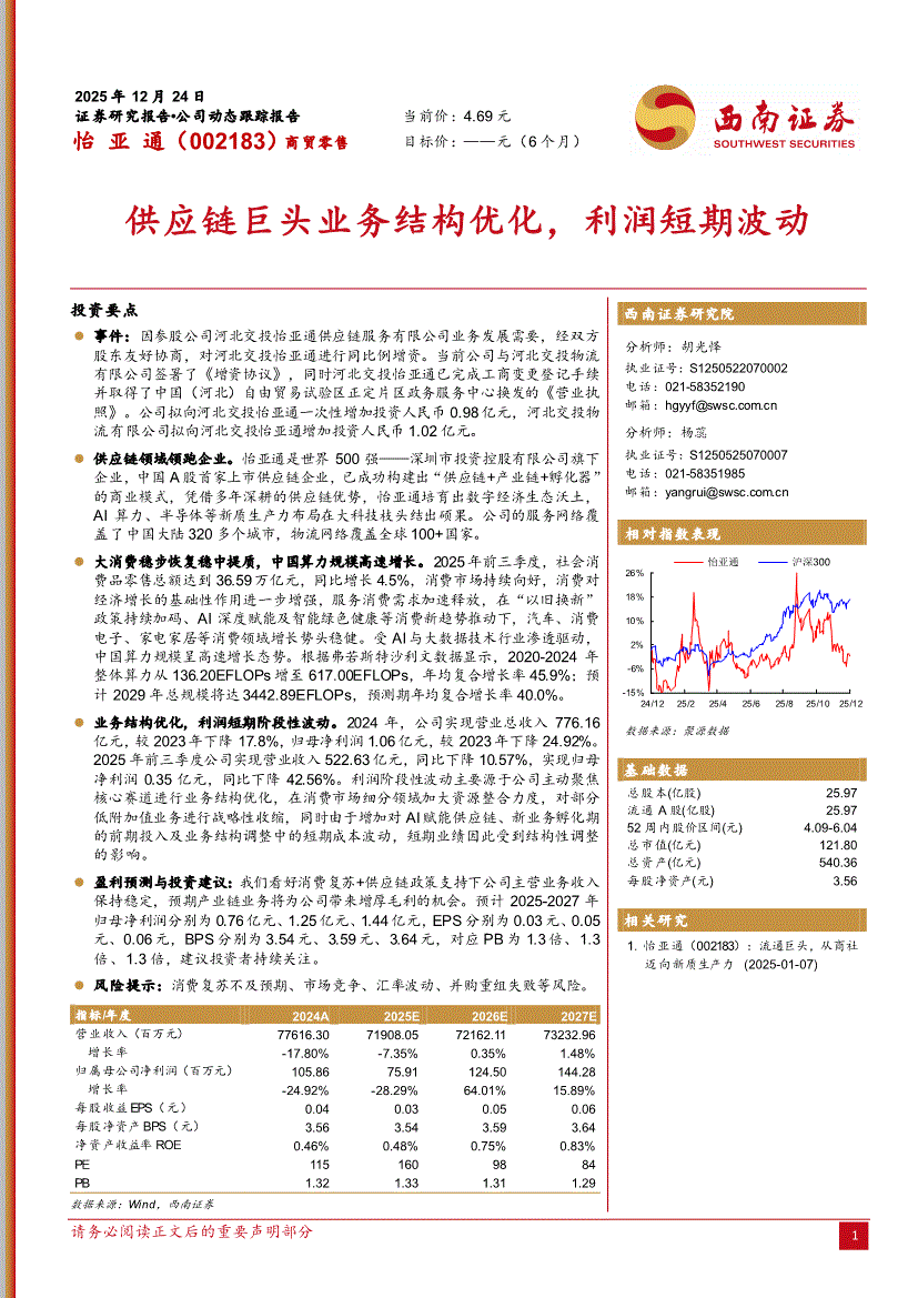 怡亚通:西南证券-怡亚通-002183-供应链巨头业务结构优化,利润短期波动-251224