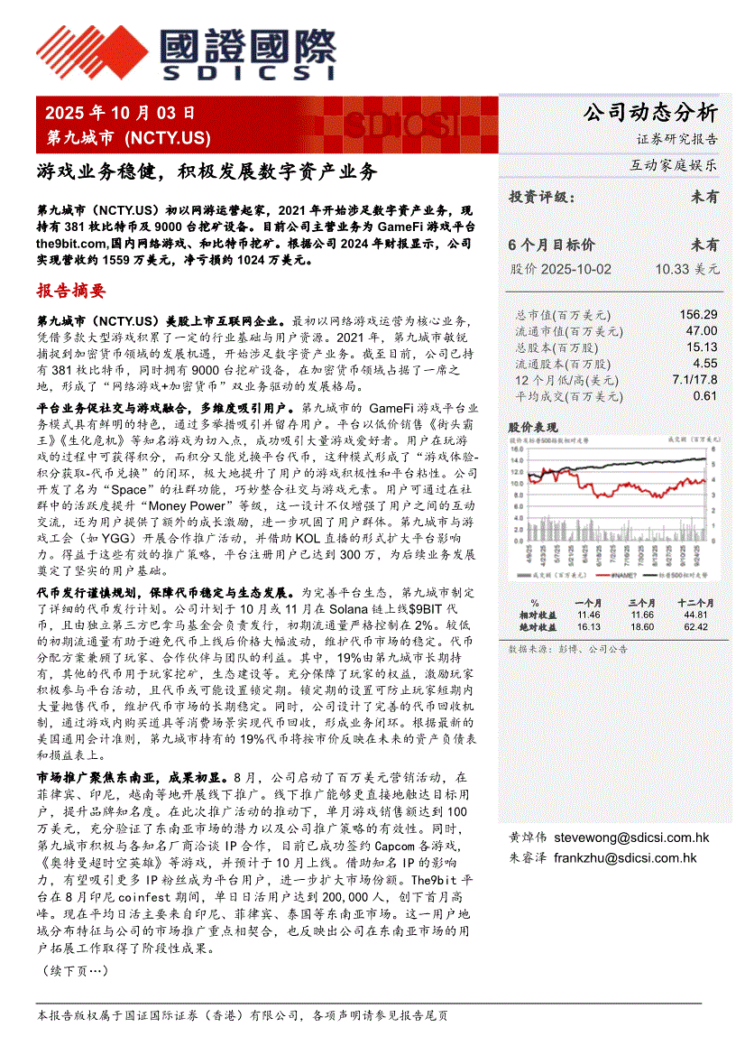 第九城市:国证国际-第九城市-NCTY.US-游戏业务稳健,积极发展数字资产业务-251003