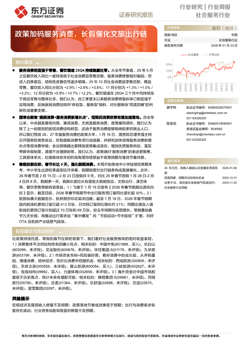 社会服务行业:东方证券-社会服务行业:政策加码服务消费,长假催化文旅出行链-260123