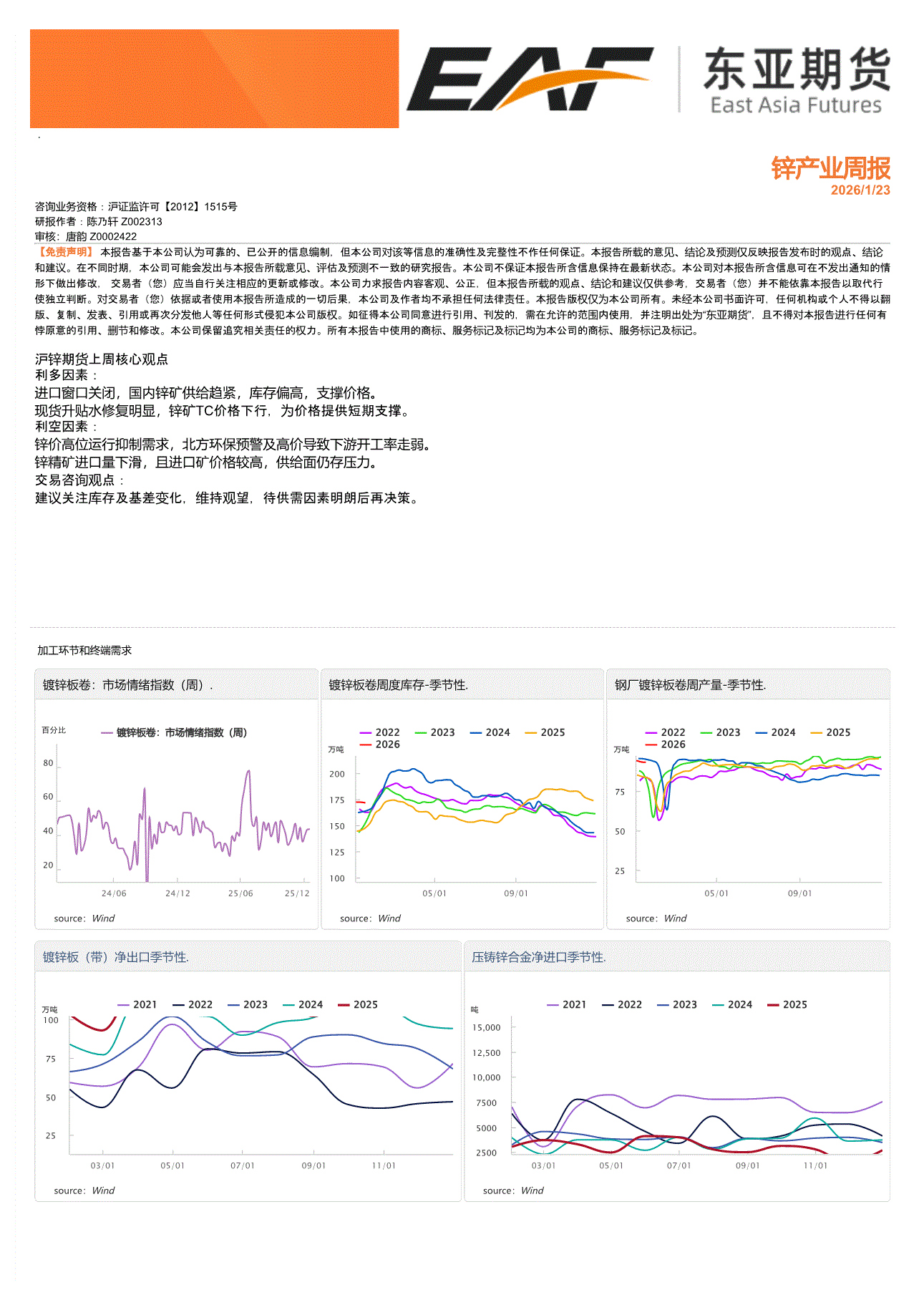 上海东亚期货-锌产业周报-260123