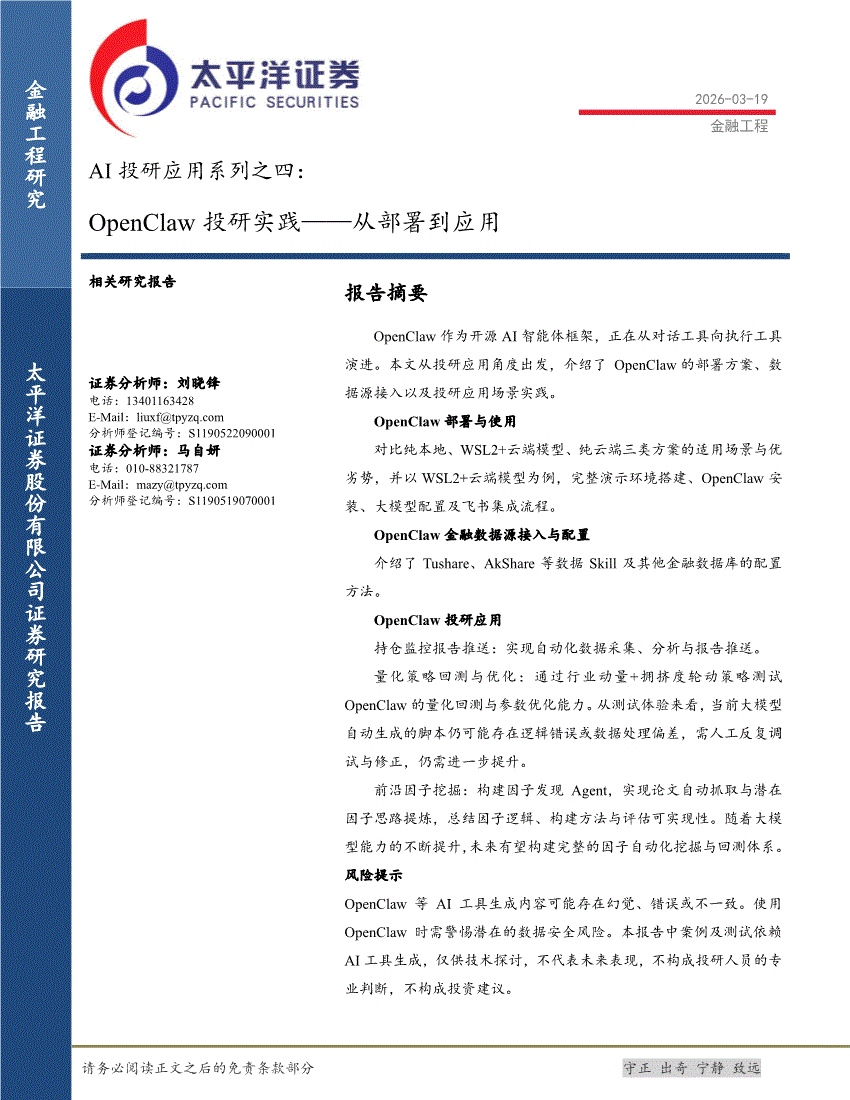 太平洋证券-AI投研应用系列之四:OpenClaw投研实践——从部署到应用-260319