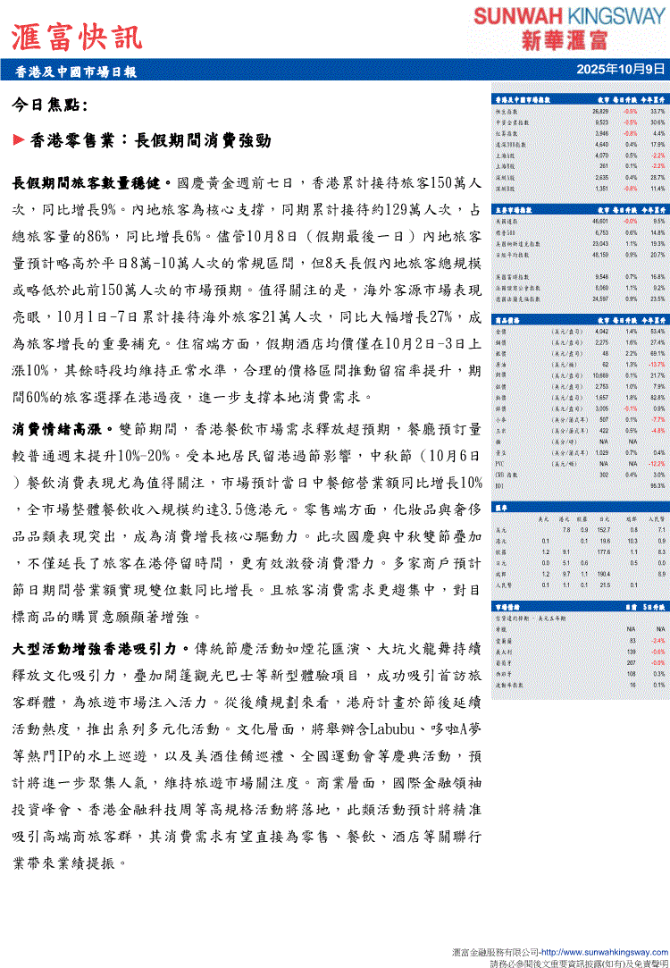 新华汇富-汇富快讯:香港及中国市场日报-251009