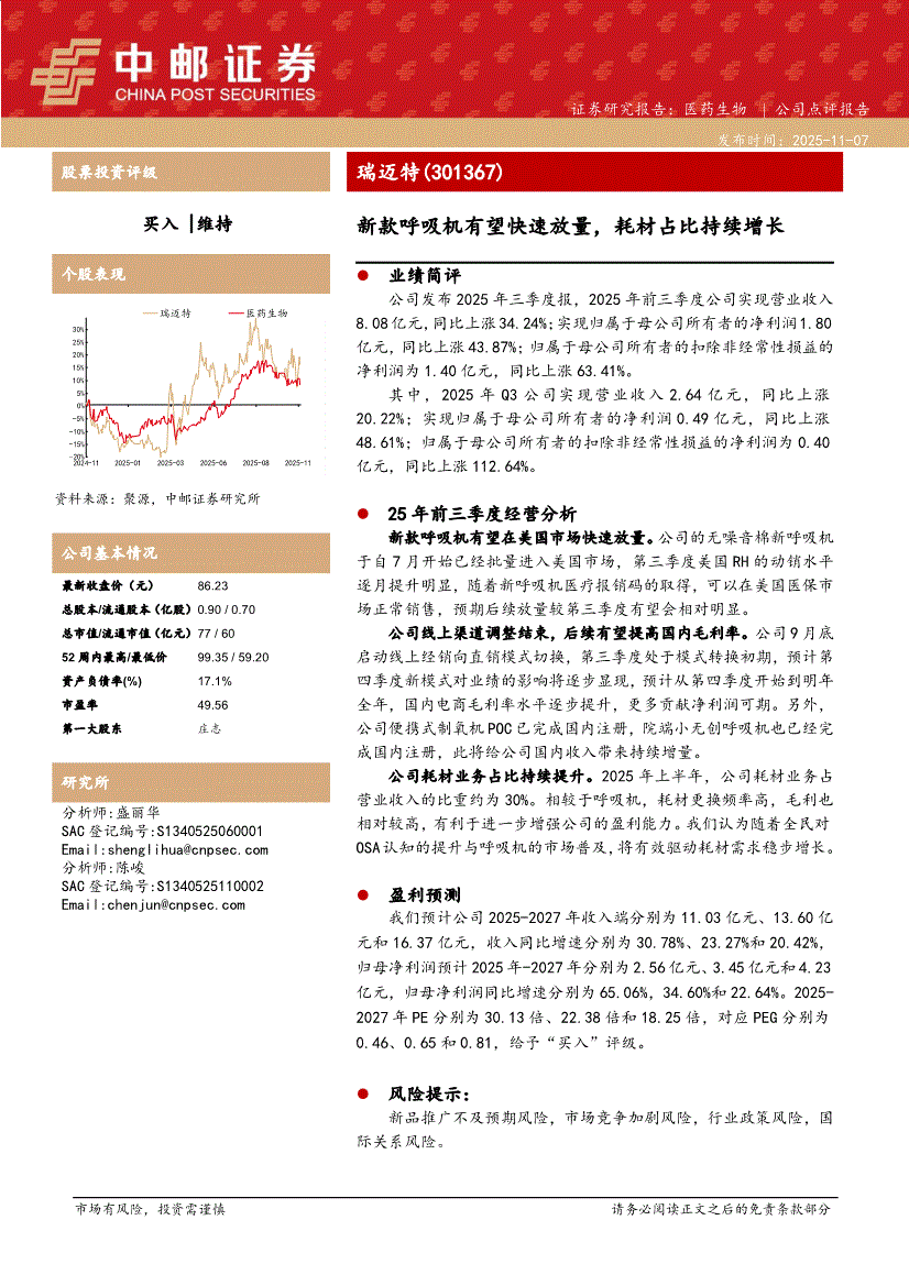 瑞迈特:中邮证券-瑞迈特-301367-新款呼吸机有望快速放量,耗材占比持续增长-251107