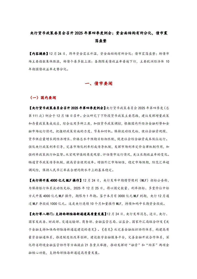 东方金诚-央行货币政策委员会召开2025年第四季度例会;资金面结构有所分化,债市震荡盘整-251225