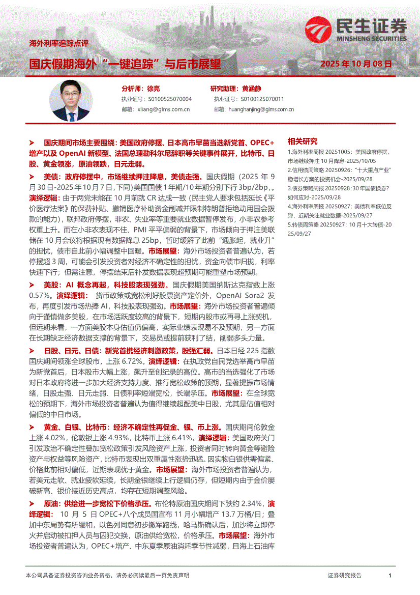 民生证券-海外利率追踪点评:国庆假期海外“一键追踪”与后市展望-251008