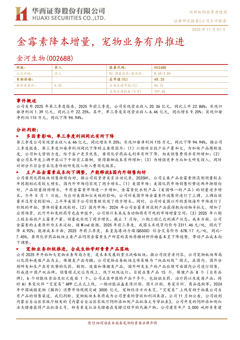 金河生物:华西证券-金河生物-002688-金霉素降本增量,宠物业务有序推进-251107