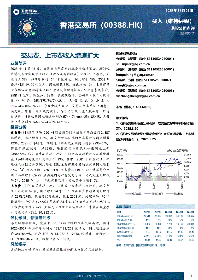 香港交易所:国金证券-香港交易所-0388.HK-交易费、上市费收入增速扩大-251105