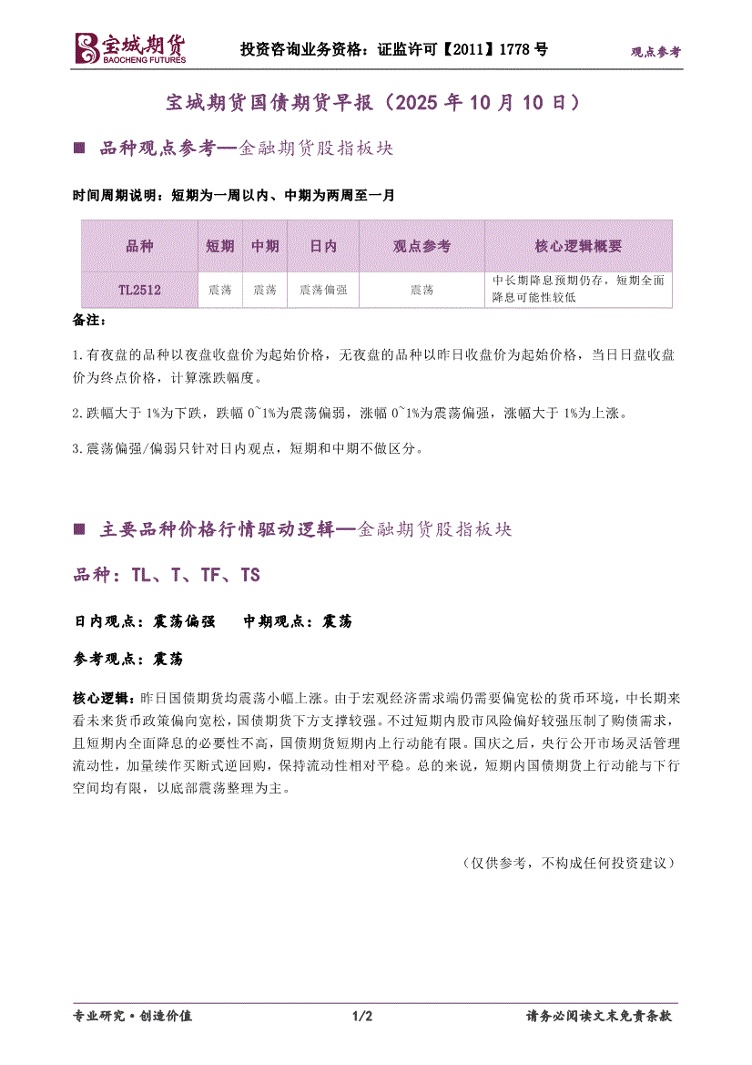 宝城期货-国债期货早报-251010