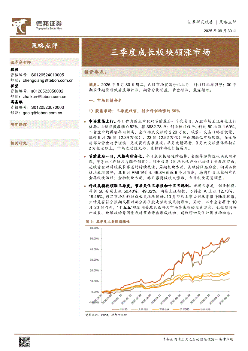 德邦证券-策略点评:三季度成长板块领涨市场-250930