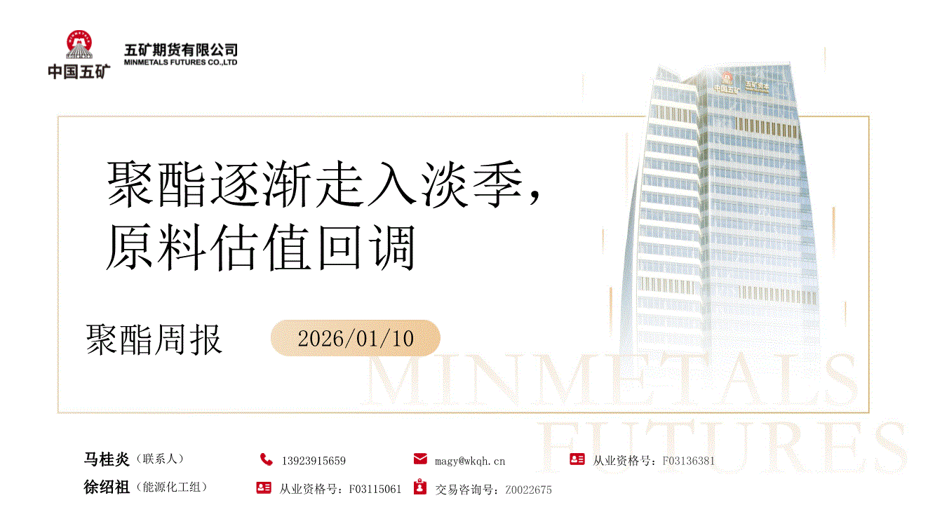 五矿期货-聚酯周报:聚酯逐渐走入淡季,原料估值回调-260110
