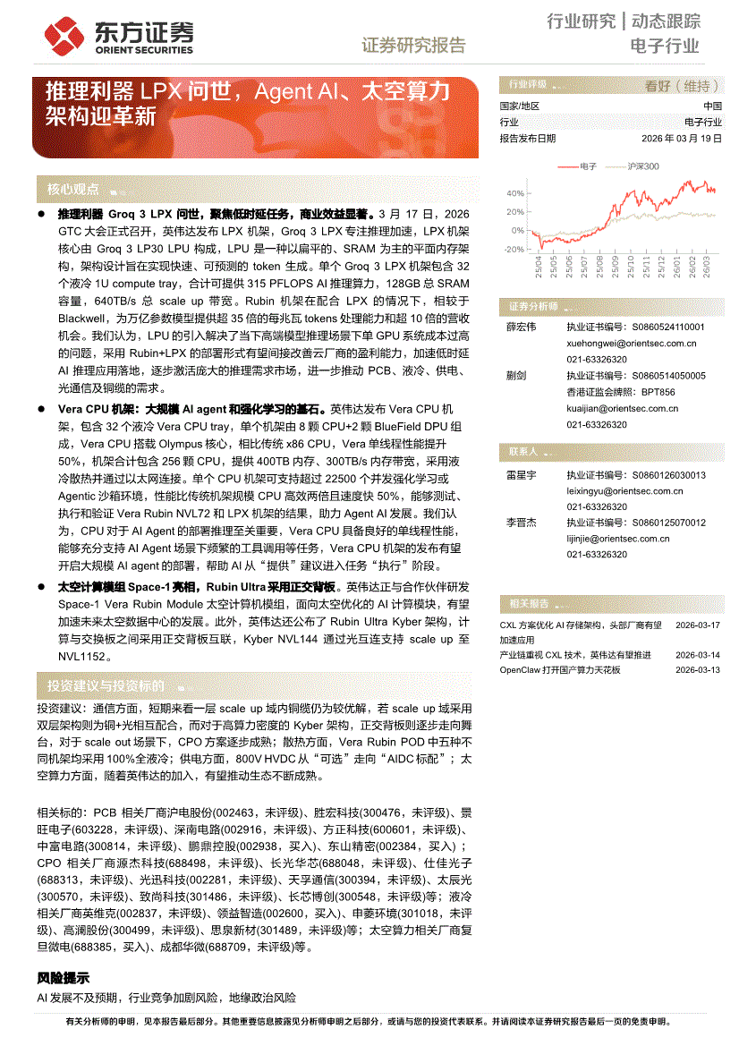 电子行业:东方证券-电子行业动态跟踪:推理利器LPX问世,Agent AI、太空算力架构迎革新-260319