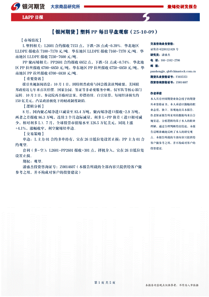 银河期货-塑料PP每日早盘观察-251009
